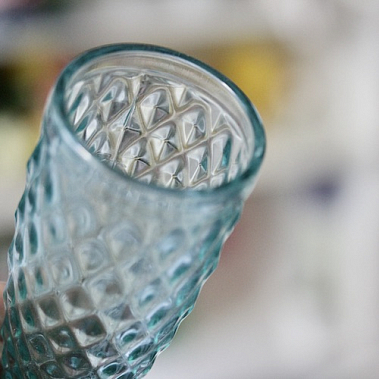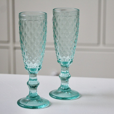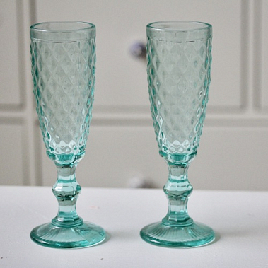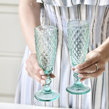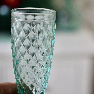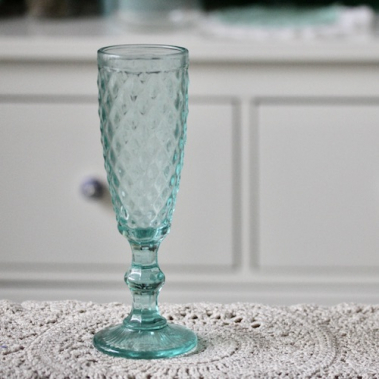 Красивый стеклянный бокал нежно-бирюзового цвета.