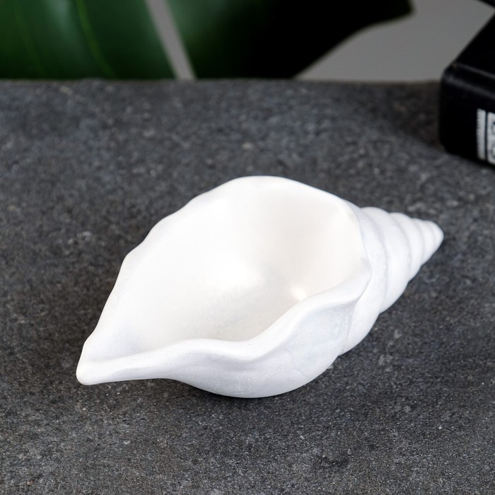 Фигурное кашпо для цветов «Ракушка», 60 мл, 13×6×3 см, гипс, белое