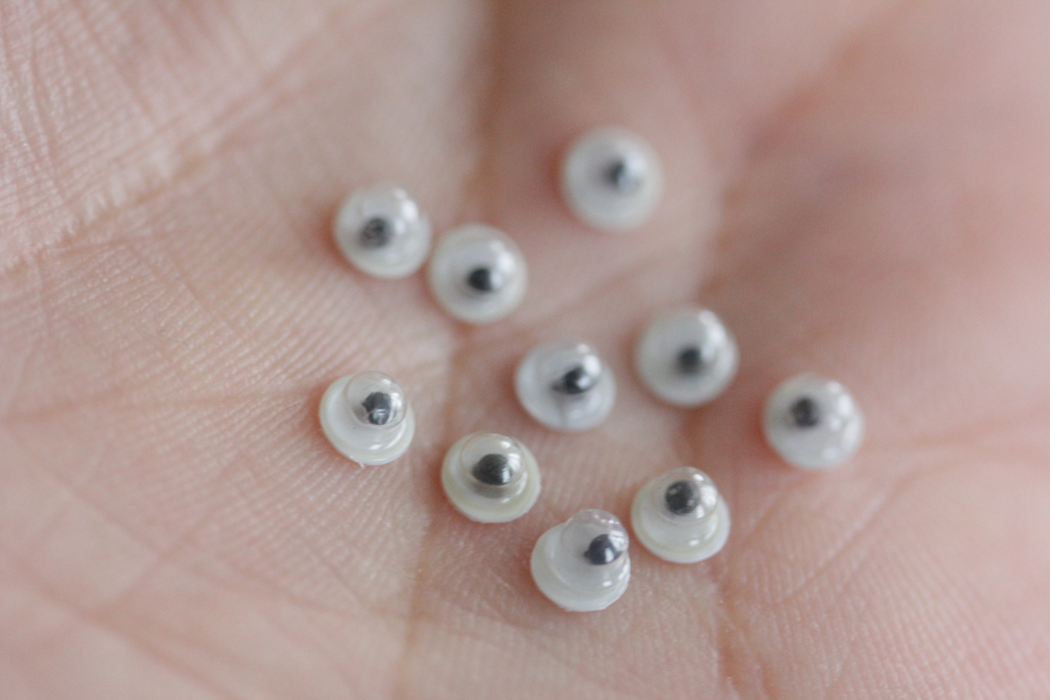 Глаза пластиковые 4 мм с движущимся зрачком. Для приклеивания. 5 пар (10 шт)