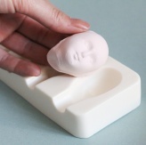 Формочка для оттиска лица куклы. Выполнен из прочного пластика. По молду можно вылепить 4 лица разного размера: Лица 4 лица разного размера: 3.4 * 4.5см , 2.8*4 см, 2.2*3.3 см, меньшее - 1.2 *2 см. Для того, чтобы не испортить молд - необходимо хорошенько протереть его перед использованием. Глину нужно использовать новую, не размокшую. Идеально присыпать молд тальком или мукой перед тем, как опускать в него глину. В противном случае есть риск, что глина влипнет в "нос" молда, и достать ее оттуда будет очень сложно. Если такое случилось - замочите молд и пройдитесь кистью по молду.