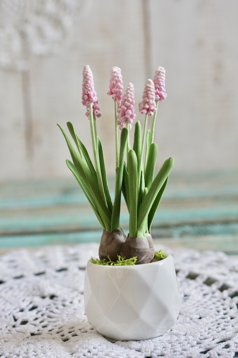 Композиция изготавливается на заказ. Срок изготовления в зависимости от объема заказа и загруженности- 1-2 недели. По вашему желанию гиацинты могут быть совершенно любого цвета.