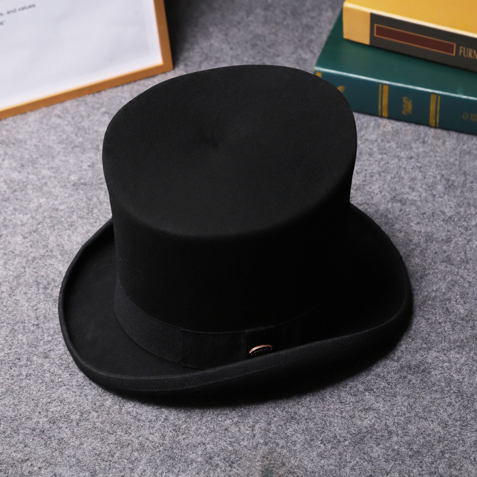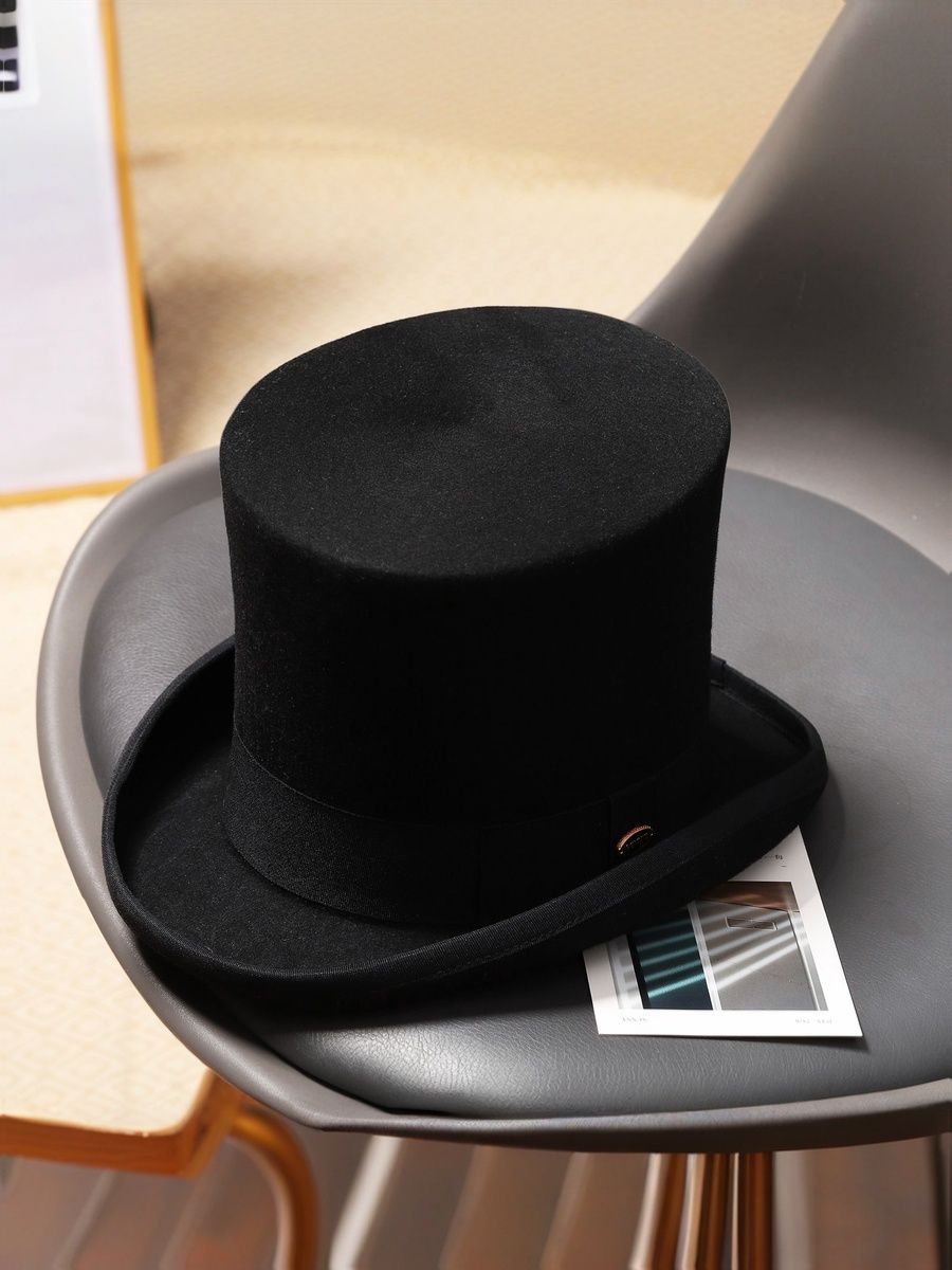 Ваш новый Цилиндр классический с высокой тульей из черного плотного фетра, размер 59 см.