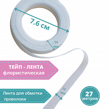 Тейп Лента бумажная белого цвета с клеем. Производство - Дания. Лента стрейч с клеем. Используется при сборке букетов, бутоньерок из живых цветов и декоративных.