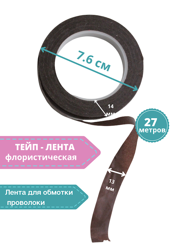Тейп - лента 13мм, коричневая