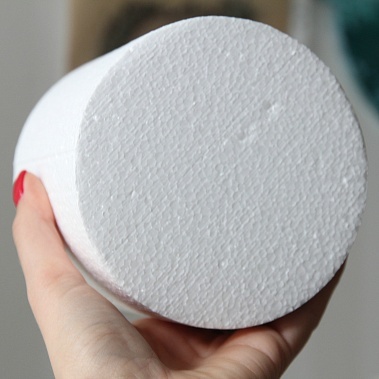 Цилиндр из пенопласта. Можно использовать, как основу для небольшого торта. Высота 12 см, диаметр основания 12см.
