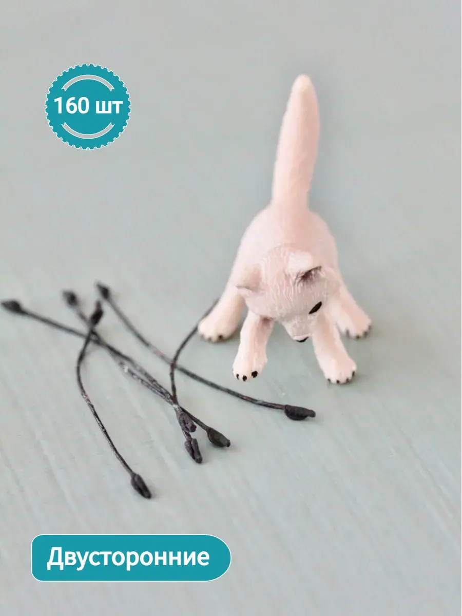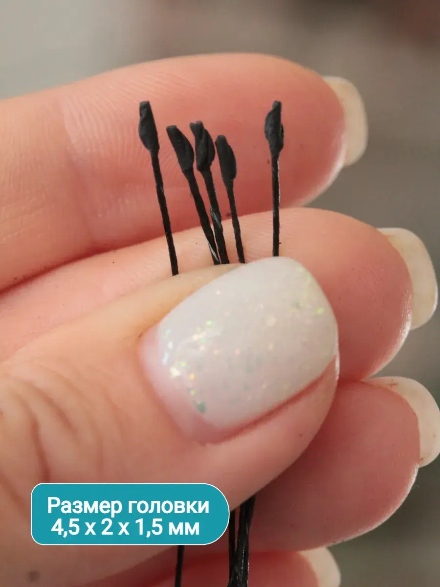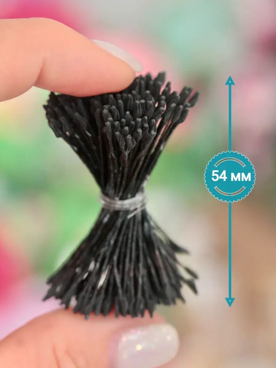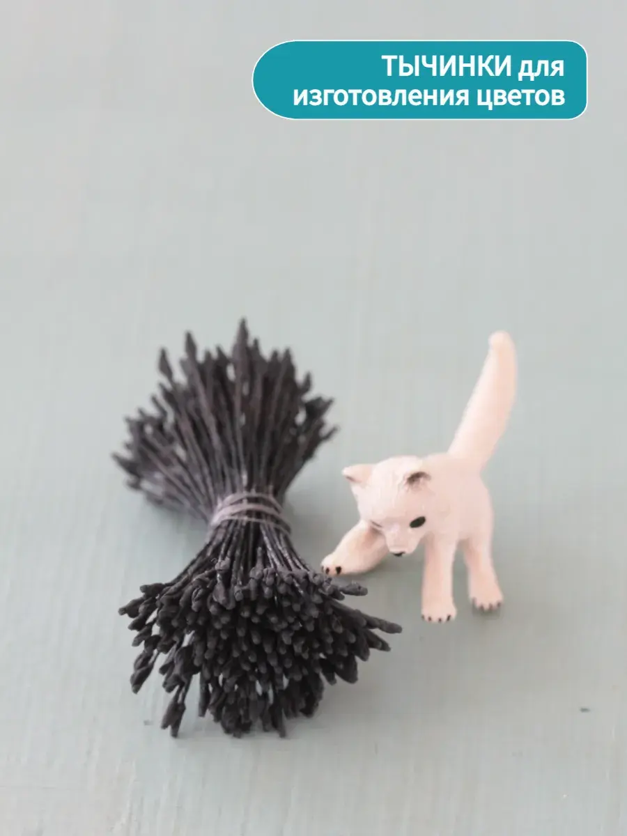 Тычинки черные мелкие для лепки декоративных цветов. В упаковке 160 нитей, из которых получится 320 тычинок. Тычинки практически незаменимый атрибут при создании качественных, профессиональных и высоко детализированных цветов из искусственных материалов (полимерная глина, скульптурный пластилин, фоамиран всех видов, фетр мягкий и жесткий, экокожа и кожзам, мастика. Черные тычинки используют для лепки цветов. Вы всегда можете покрасить тычинки в любой цвет акриловыми красками. Нить держит форму даже при намокании. Тычинки не съедобны, это нужно учитывать при изготовлении цветов из мастики для тортов.