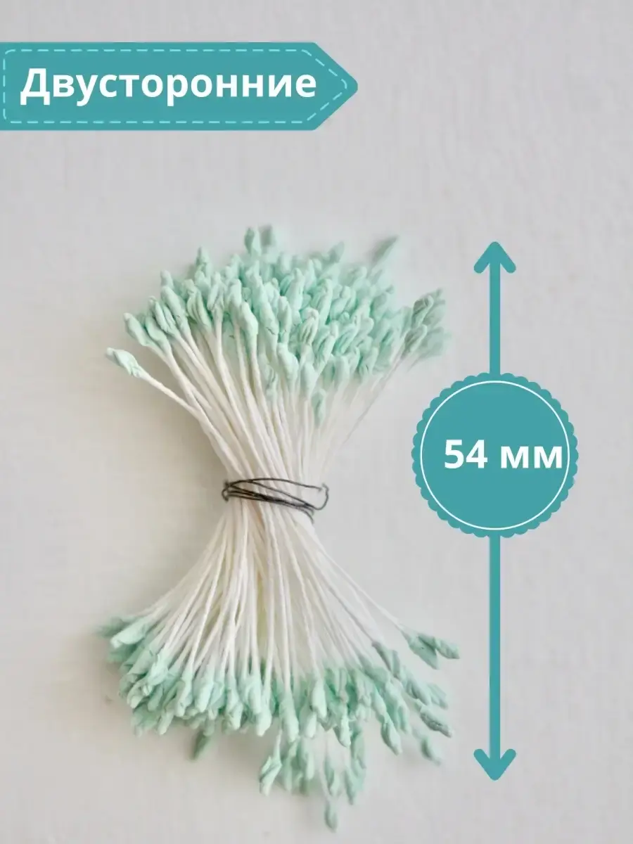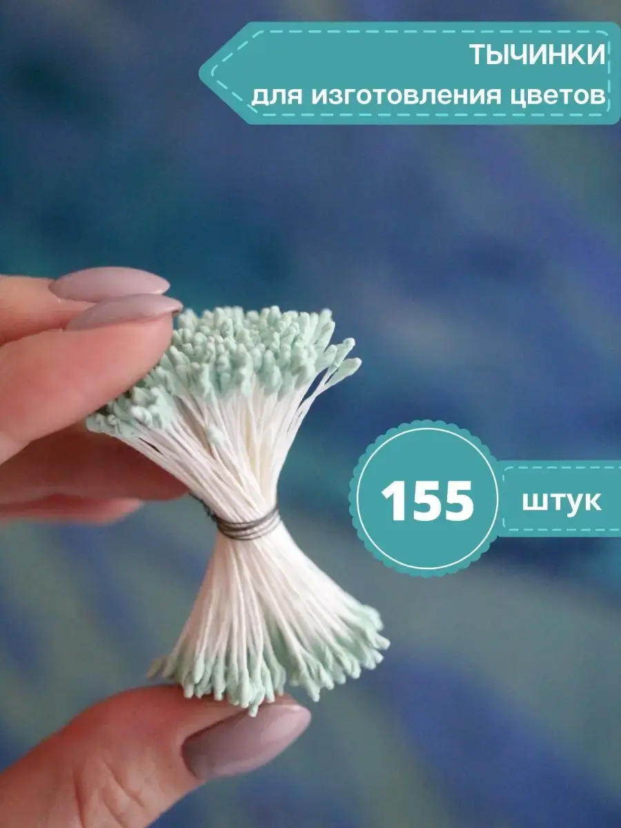 Тычинки салатовые с белым среднего размера для лепки декоративных цветов. В упаковке 155 нитей, из которых получится 310 тычинок. Тычинки практически незаменимый атрибут при создании качественных, профессиональных и высоко детализированных цветов из искусственных материалов: полимерная глина, скульптурный пластилин, фоамиран всех видов, фетр мягкий и жесткий, экокожа и кожзам, мастика. Вы всегда можете покрасить тычинки в любой цвет акриловыми красками. Нить держит форму даже при намокании. Тычинки не съедобны, это нужно учитывать при изготовлении цветов из мастики для тортов. Сделано в Японии, не токсичны и безопасны.