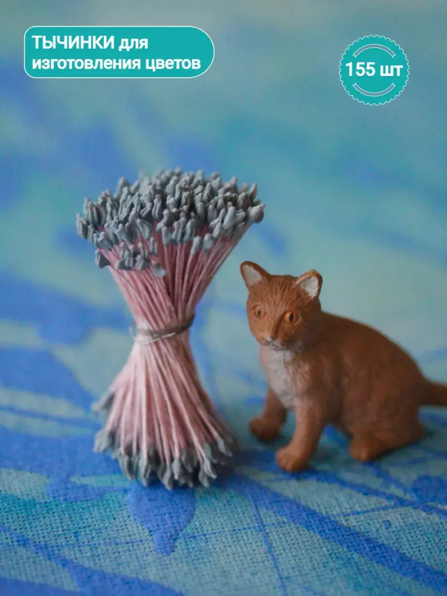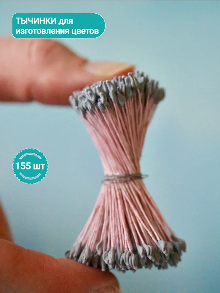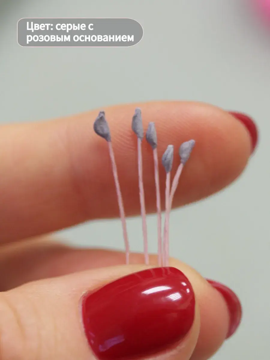 Тычинки серые с розовым основанием средние для лепки декоративных цветов. В упаковке 155 нитей, из которых получится 310 тычинок. Тычинки практически незаменимый атрибут при создании качественных, профессиональных и высоко детализированных цветов из искусственных материалов: полимерная глина, скульптурный пластилин, фоамиран всех видов, фетр мягкий и жесткий, экокожа и кожзам, мастика. Вы всегда можете покрасить тычинки в любой цвет акриловыми красками. Нить держит форму даже при намокании. Тычинки не съедобны, это нужно учитывать при изготовлении цветов из мастики для тортов. Сделано в Японии, не токсичны и безопасны.