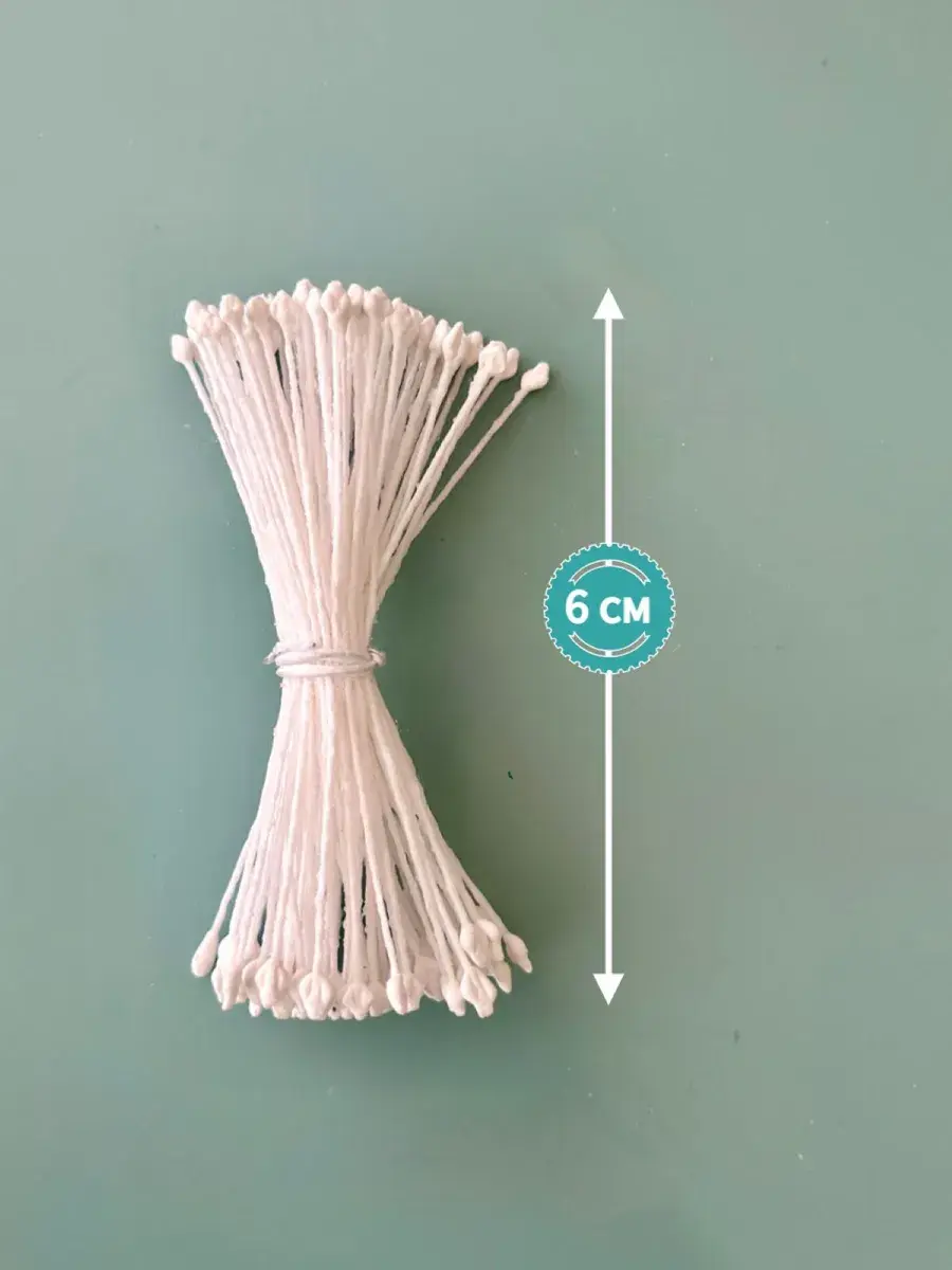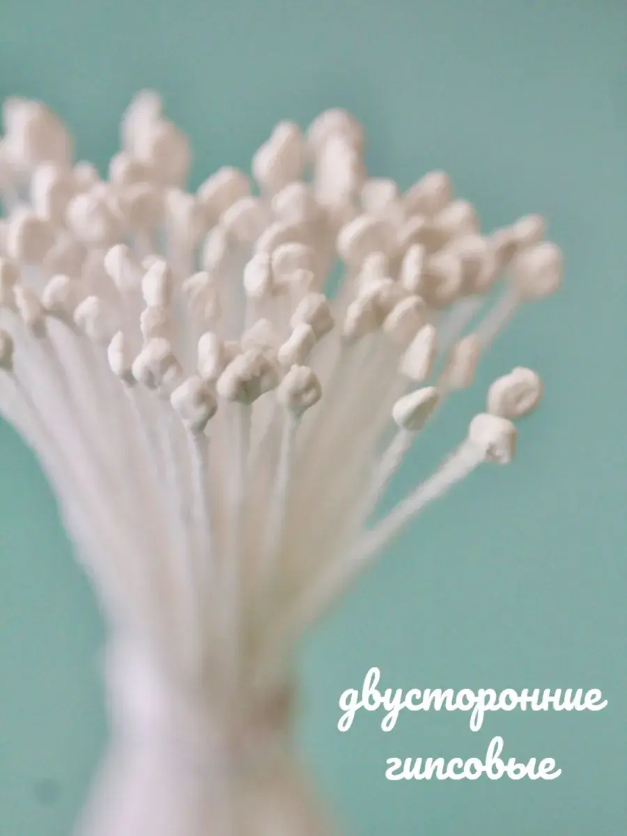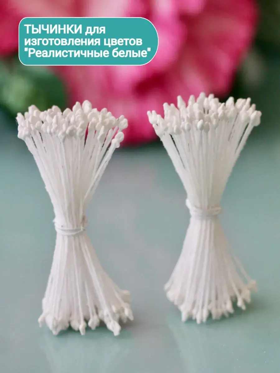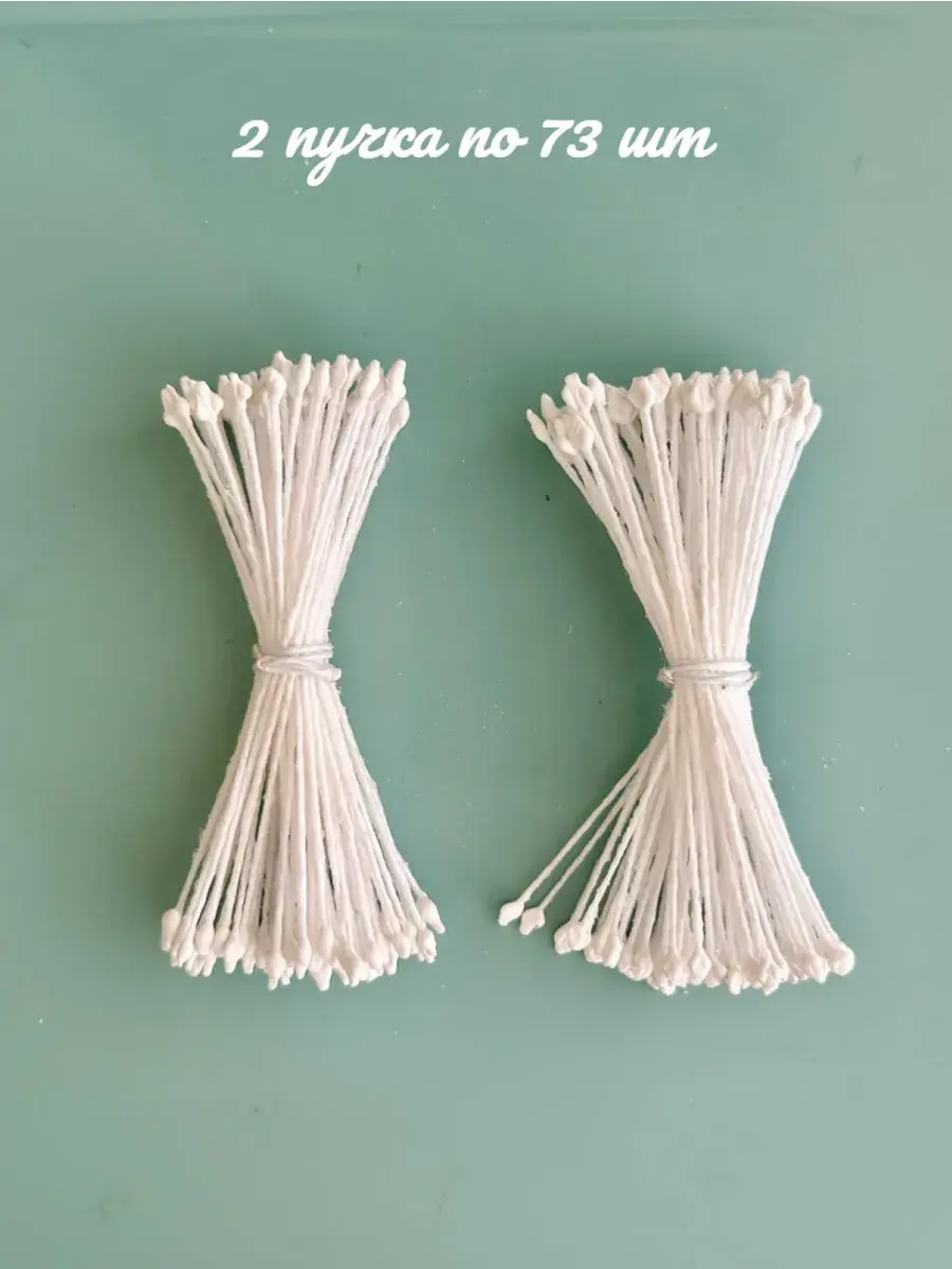 Тычинки белые для лепки декоративных цветов. В упаковке 2 пучка по 73 нити, из которых получится 292 тычинки. Тычинки практически незаменимый атрибут при создании качественных, профессиональных и высоко детализированных цветов из искусственных материалов: полимерная глина, скульптурный пластилин, фоамиран всех видов, фетр мягкий и жесткий, экокожа и кожзам, мастика. Вы всегда можете покрасить тычинки в любой цвет акриловыми красками. Нить держит форму даже при намокании. Тычинки не съедобны, это нужно учитывать при изготовлении цветов из мастики для тортов.