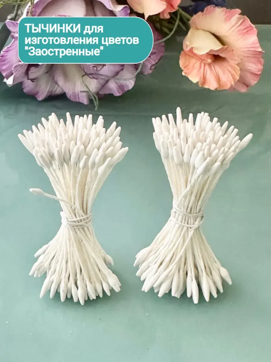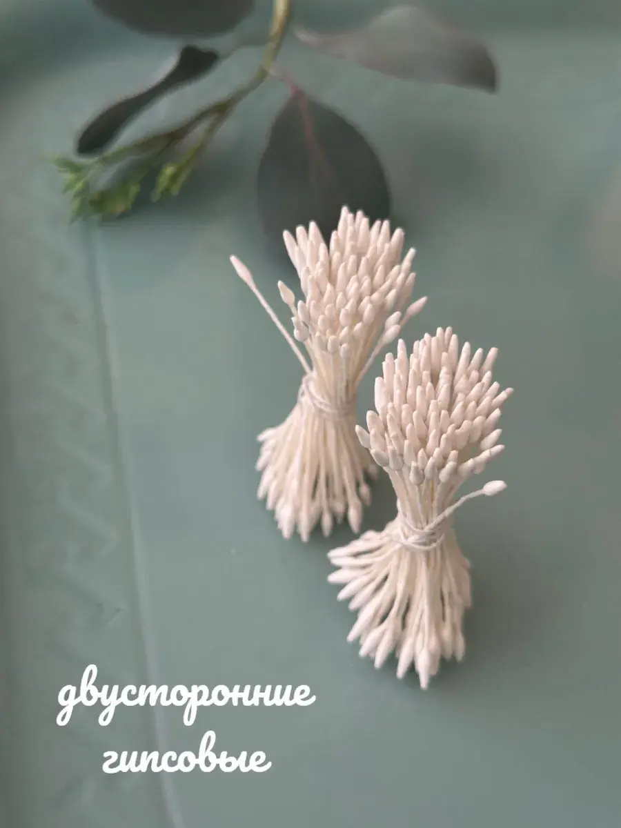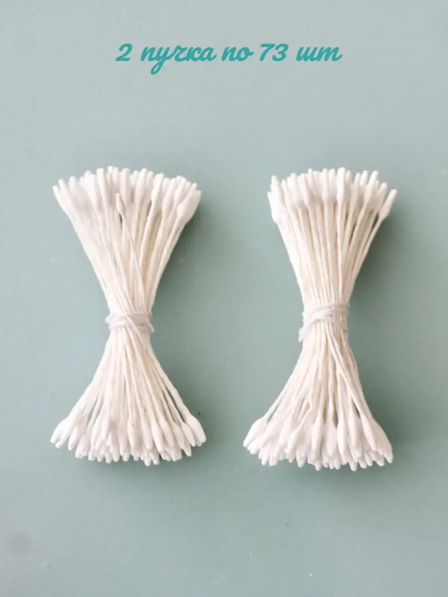 Тычинки белые крупного размера для лепки декоративных цветов. В упаковке 2 пучка по 73 нити, из которых получится 292 тычинки. Тычинки практически незаменимый атрибут при создании качественных, профессиональных и высоко детализированных цветов из искусственных материалов: полимерная глина, скульптурный пластилин, фоамиран всех видов, фетр мягкий и жесткий, экокожа и кожзам, мастика. Вы всегда можете покрасить тычинки в любой цвет акриловыми красками. Нить держит форму даже при намокании. Тычинки не съедобны, это нужно учитывать при изготовлении цветов из мастики для тортов.