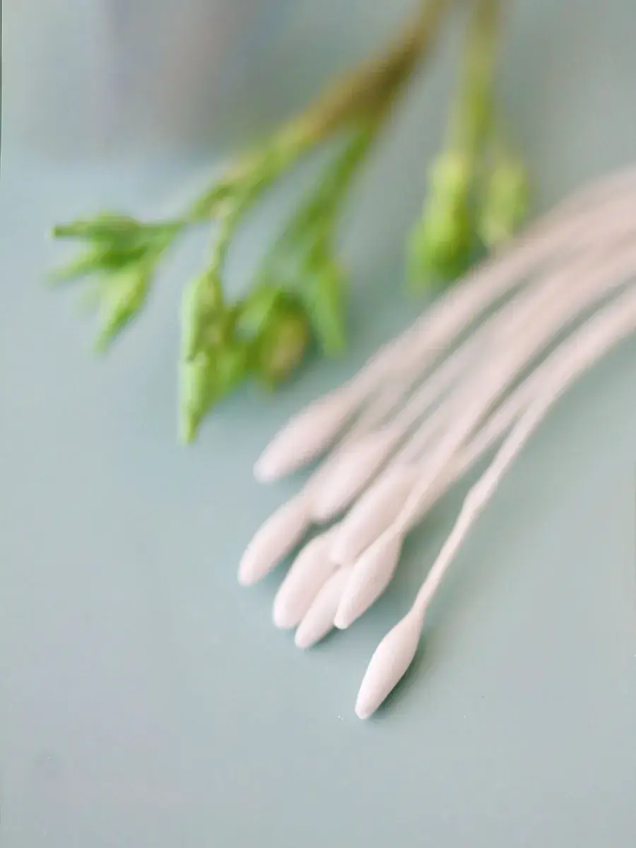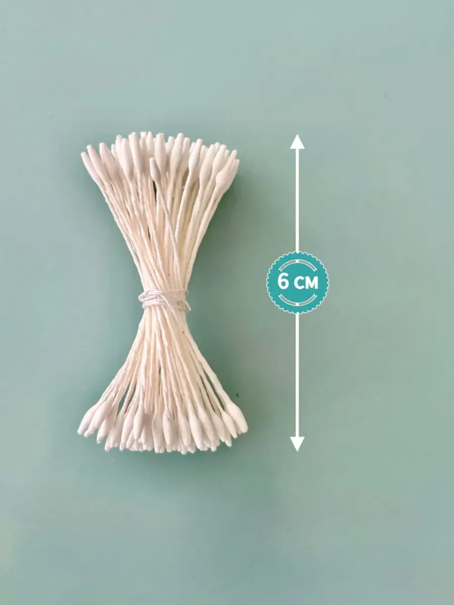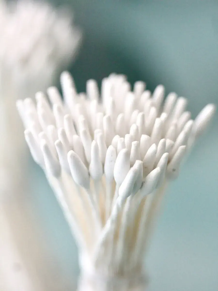 Тычинки белые крупного размера для лепки декоративных цветов. В упаковке 2 пучка по 73 нити, из которых получится 292 тычинки. Тычинки практически незаменимый атрибут при создании качественных, профессиональных и высоко детализированных цветов из искусственных материалов: полимерная глина, скульптурный пластилин, фоамиран всех видов, фетр мягкий и жесткий, экокожа и кожзам, мастика. Вы всегда можете покрасить тычинки в любой цвет акриловыми красками. Нить держит форму даже при намокании. Тычинки не съедобны, это нужно учитывать при изготовлении цветов из мастики для тортов.