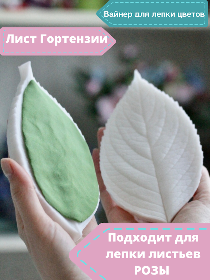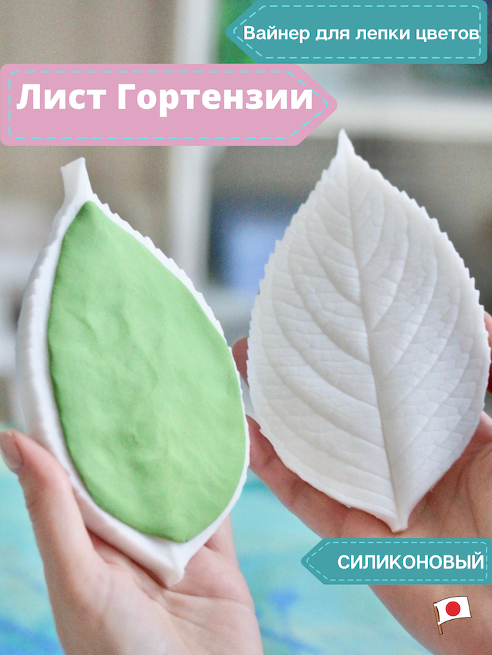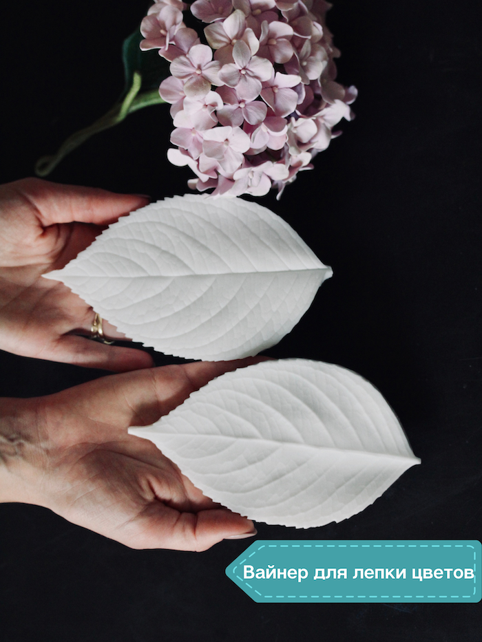 Двусторонний силиконовый молд - вайнер для листьев Гортензии ClayCraft by DECO. Большой размер молда позволит слепить листья разного размера. Длина 16 см, ширина 9 см.