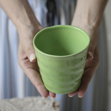 Кашпо светло-зеленого цвета, идеально подойдет к любой композиции по цветовой гамме.