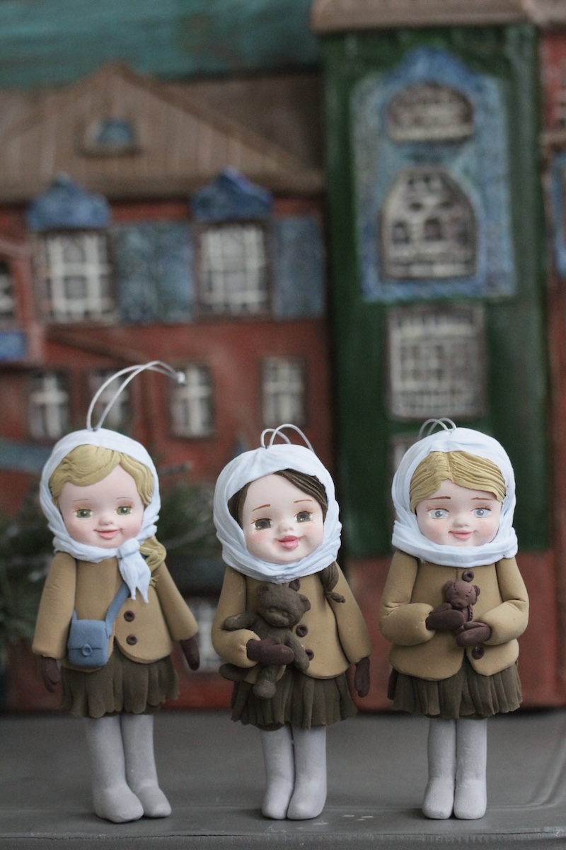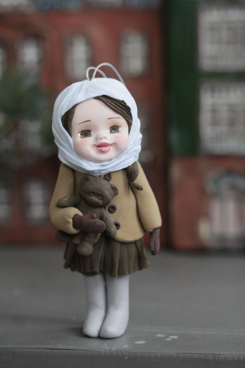 Ёлочная игрушка Девочка-пупсик в платочке с мишкой