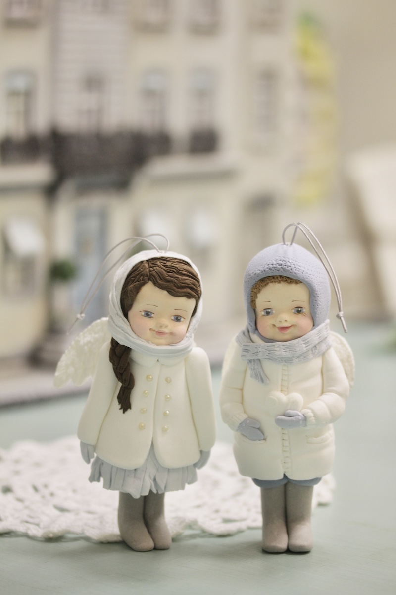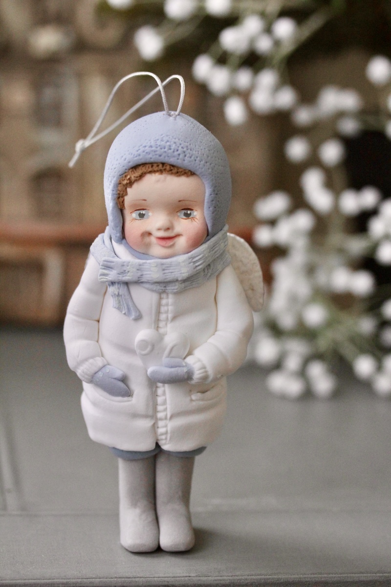 Ёлочная игрушка Мальчик-пупсик в белом пуховичке.